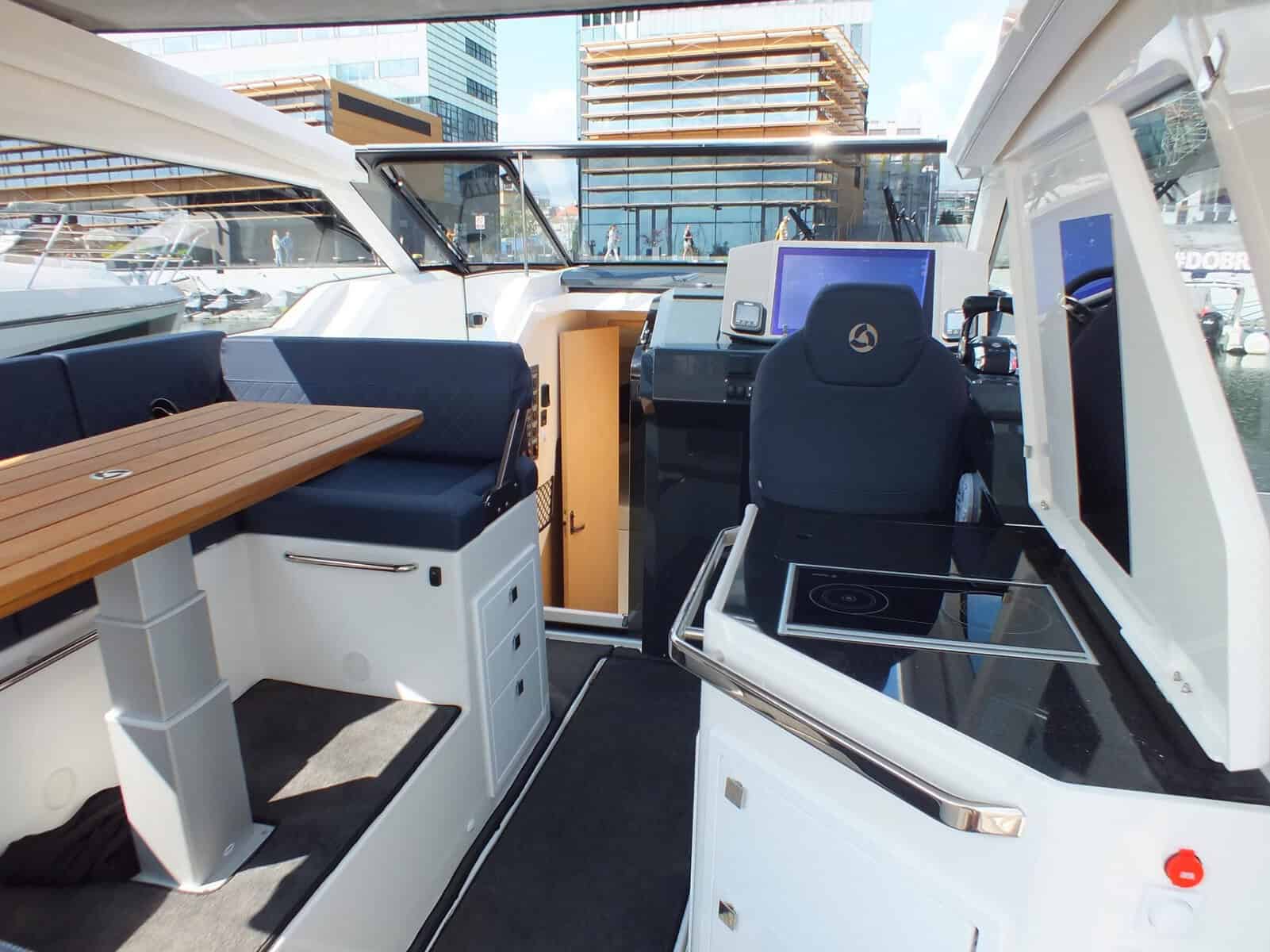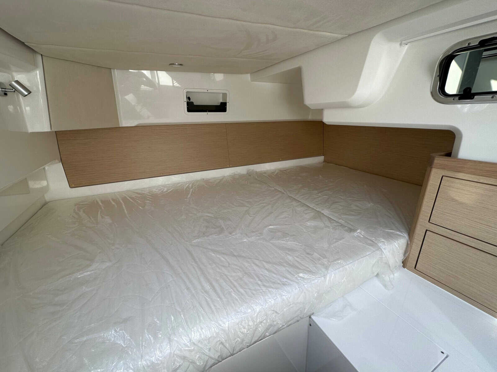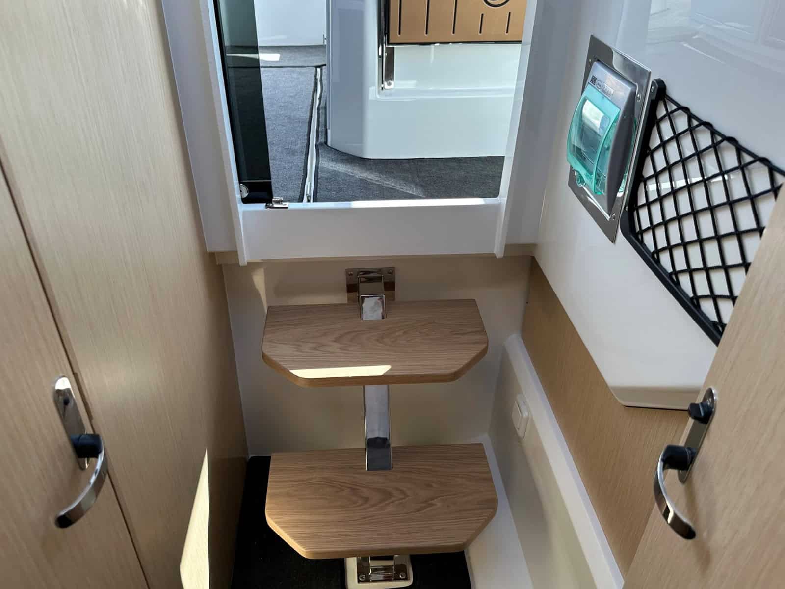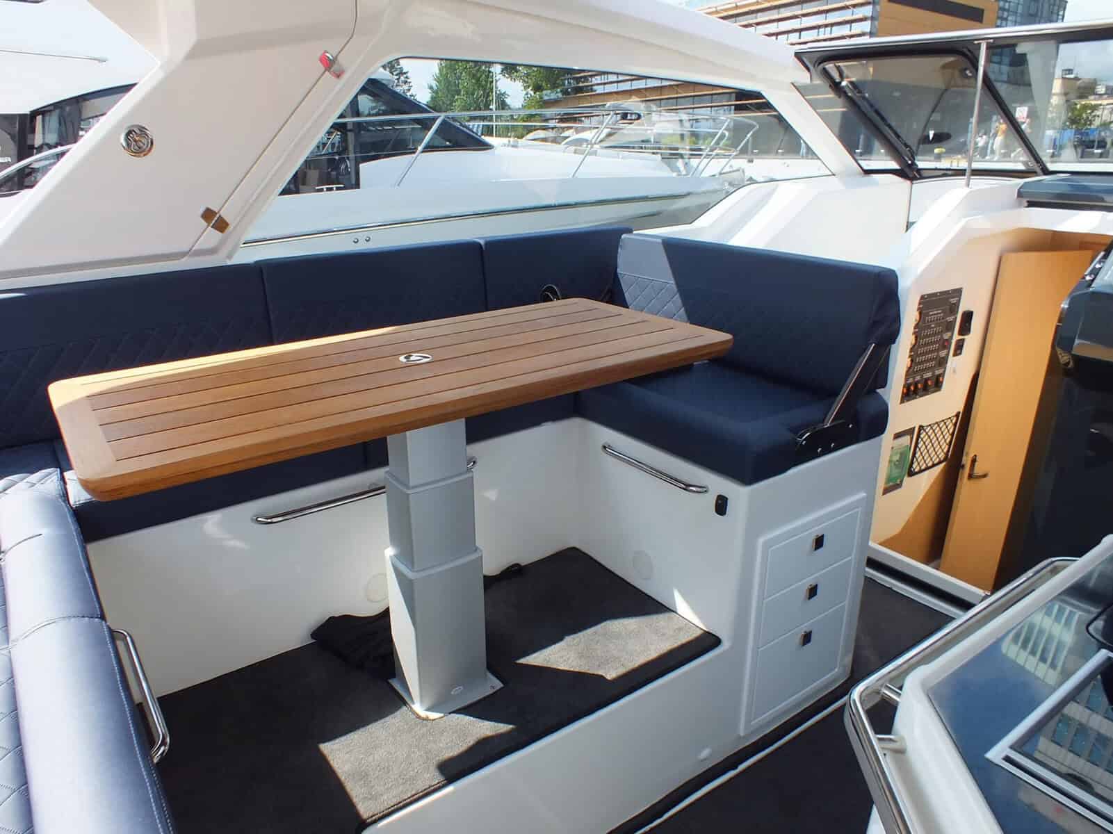 The Sorrento offers increased onboard accommodation with its versatile modular seating configuration in the cockpit. By converting the sofa and table, this social space transforms into a comfortable 2-berth double bed. With this feature, the Sorrento can accommodate a maximum of 6 persons overnight.