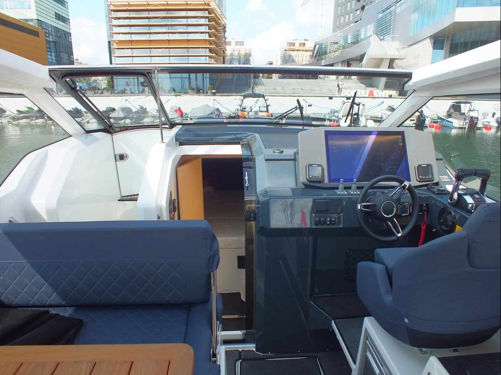 The Sorrento’s cockpit is designed to feel bright, airy, and spacious, enhanced by large glass windows in the wheelhouse area. Taking it a step further, the Panoramic roof design amplifies this effect. By opening the roof, you can invite sunlight and fresh air into the main helm and on-deck social areas, seamlessly blending the outdoors with the protected spaces, creating a harmonious “outside-in” experience.