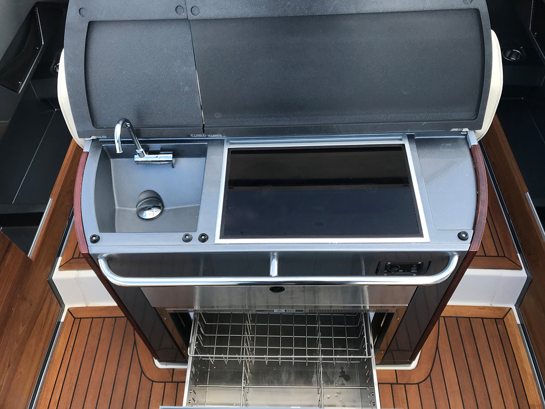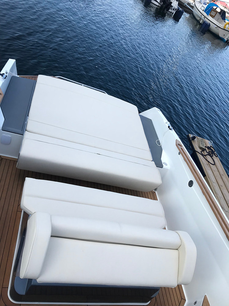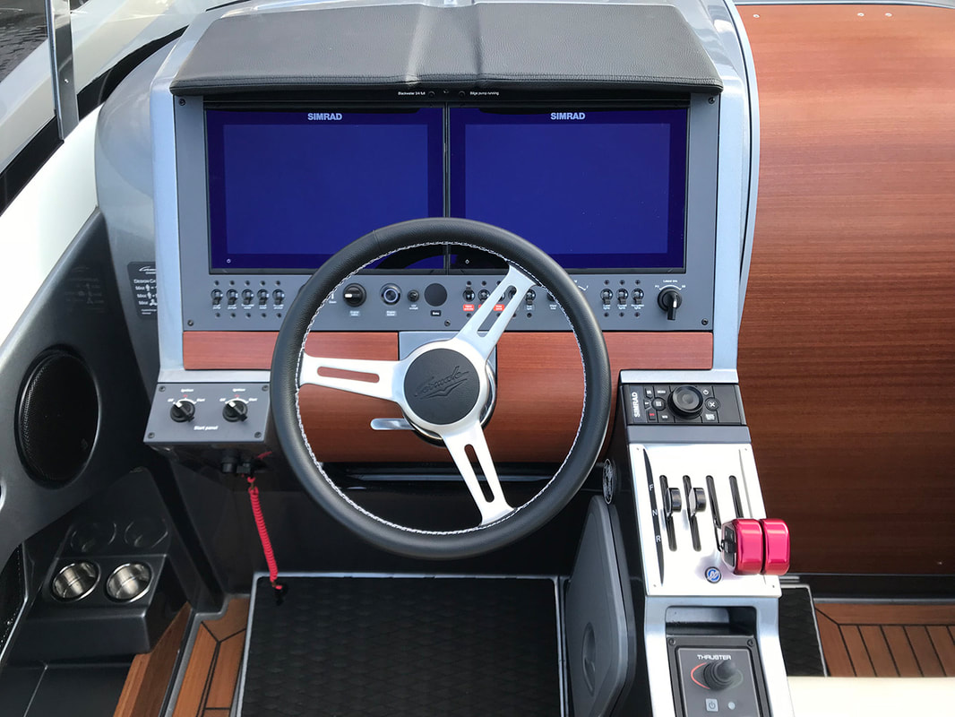 The Chase 35 can also be delivered with; 100 W solar panel (no need for cable charging), digital antifouling system (can be driven by solar panel), joystick maneuvering with sky hook (on twin engine boats), full or half canopy/sprayhood and bimini top.