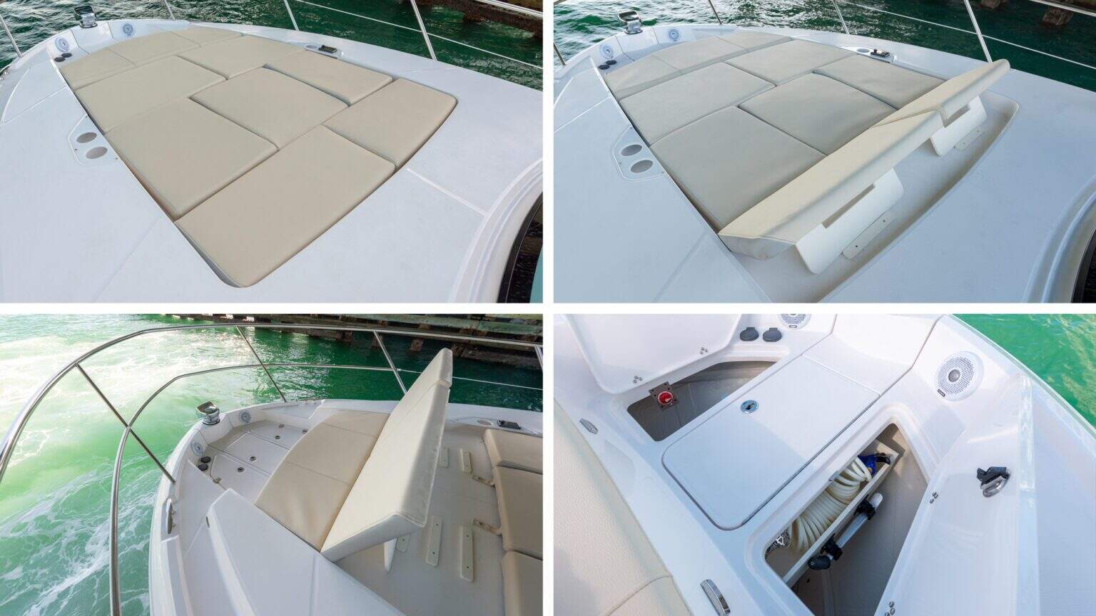 UltraLounge – Multi-position backrest allows forward, aft, lounge aft, or full sunbathing positions, accommodating any preferred seating or lounging style.